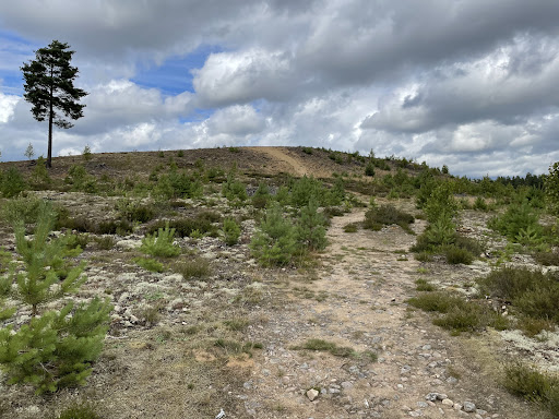Wenn man in Småland einen Rundwanderweg sucht, wird man oft in einem Naturreservat fündig. So auch in diesem kleinen, aber durchaus lohnenswerten Naturreservat mit einem der größten Flugsandfelder Schwedens. Um die größte Erhebung herum führt ein mit blauer Farbe sehr gut markierter Wanderweg durch Flechten, Heidekraut, Moos, Wald und Felsen. Der Weg ist sehr abwechslungsreich, aber keineswegs für Kinderwagen geeignet. Mit einem Abstecher zum höchsten Aussichtspunkt ist der Rundwanderweg etwa 2,6 Kilometer lang. Wir werden auf jeden Fall wiederkommen, unserem Hund hat die Runde nämlich auch ausgesprochen...