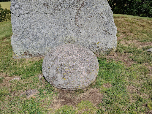 Nice little walk from the parking spot to a grave-hill from the Iron-Time. The hill is about 6 meter high and 37 meter in diameter. My pictures shows the little walking path to it and the grave hill. The walk itself is about 5 minuuts and is not hard to do. Within 15 minuuts you have seen everything. For people unable to climb the grave-hill and see the round grave-stone there is an alternative. There is a duplicate of that stone ond...