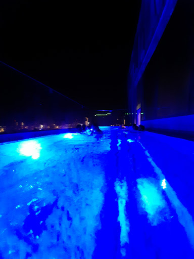 There is a small “experience” pool area, with VR snorkelling (cost extra), some wall climbing, and a room with daunt projections of flying or motor cross being projected. There are a few standard plastic jacuzzis. Best with athomsphere are the cool lights.