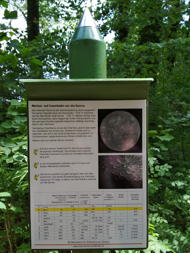 Read moreBeim grossen Sonnenmodell beginnt der Planetenweg. Die inneren Planeten folgen in kurzen Abständen, denn 1 Meter Planetenweg entspricht in Wirklichkeit 1 Million Kilometer. Pluto findet man aber erst...