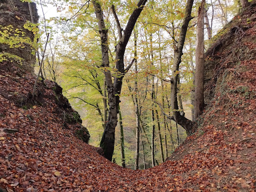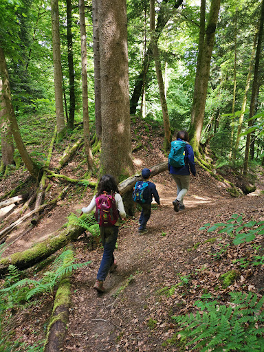 Lots of fun, wild nature with many rocks and slopes to climb, small cave openings to explore and several places to make a fire. Google "Des Teufels Untergrund" for a map to try and find the caves. Lots of fun for both kids...