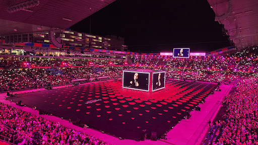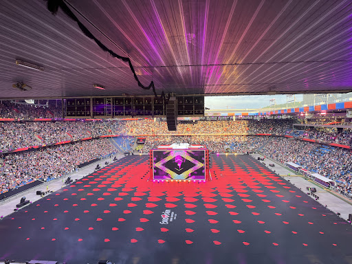 I had a chance to visit St. Jakob-Park for the Eurovision Grand Final Public Viewing Show, and I had a great time! The organization of the event was very well done. The stadium is huge and actually way bigger than St. Jakobshalle, where Eurovision itself was held. The Public Viewing Show was completely sold out, and the stadium was packed! While entering the stadium and waiting in the long lines, many people joked, âWhoâs even inside the arena if everyone is waiting to get into the stadium?â :-) The stadiumâs overall condition is good. It is noticeable that the whole venue is a bit dated, and it definitely needs a facelift to look nicer. Despite that, all areas were very clean. There are plenty of restrooms around the stadium with easy access from any section. There are also many food kiosks offering a good variety of snacks and drinks. Prices for food and drinks were mid-range, but actually reasonable compared to the generally high prices in Basel. Garbage bins were placed right by every section, which was a big plus. The seating and section numbering were well organized, so I found my seat without any problem. My seat was in Block Parkett C4, Row 16, and I had a very nice view of the whole stadium, specifically of the huge LED screen in the middle that broadcast the Eurovision Grand Final. The seat was moderately comfortable, definitely more spacious and better than the seats in St. Jakobshalle. I can absolutely recommend this specific section and row to anyone coming to the stadium to watch a game â the overall views are very clear. Iâm not sure if the sound system was arranged specifically for the Eurovision Public Viewing, but the speakers worked flawlessly â the sound quality was outstanding throughout the stadium. The stadium is easy to reach from Basel or from Saint-Louis, France, where my hotel was right on the Swiss-French border. Itâs about 20 minutes by direct train, around 45 minutes on foot, or even faster with scooters and bikes using Baselâs bike lanes; from my hotel in Saint-Louis an Uber ride took just 12 minutes and cost âŹ15. Another highlight was the stadiumâs capacity to launch massive, spectacular fireworks â like the ones at the end of the Eurovision Grand Final. Overall, visiting St. Jakob-Park for the Eurovision Grand Final Public Viewing Show was an unforgettable experience that I truly enjoyed. I hope the venue will get a facelift and be further modernized in the future to host more high-tech events â maybe even another Eurovision someday,...