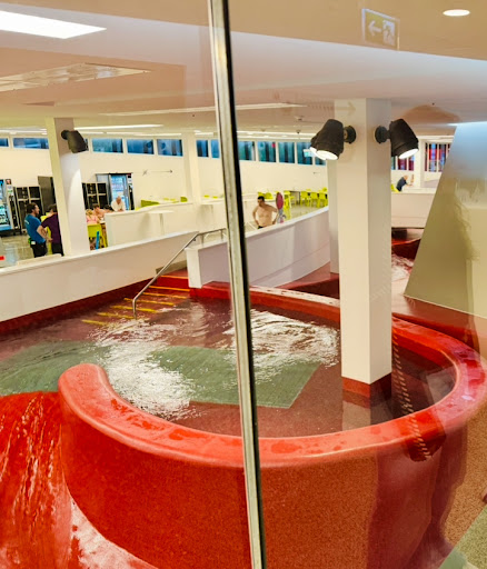Moreover, the signage is very confusing. Upon entry, you're greeted by a cacophony of screaming children, and due to the poor acoustic design, it is quite painful on the ears. There seems to be a separate spa dressing room, but it's only for members. As a result, you end up walking a significant distance to find an empty dressing room, only to realize you need to wear bathing clothes to access the sauna area. Finding the showers is another challenge, as you must pass two saunas and follow confusing signage. It appears forbidden to use soap in some showers, but later on, you discover another shower area where soap use is presumably allowed.
