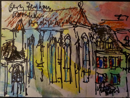 Read moreDie Prediger-Mönche im Orden der Dominikaner (lat. Ordo Praedicatorum) bauten schlichte Hallen-Kirchen, meist ohne Turm, die wenig ablenken von Predigt und Gebet. Später diente die Kirche den geflohenen französischen Hugenotten, deshalb auch Französische Kirche genannt. Meine Skizze zeigt das Gebäude-Ensemble mit...