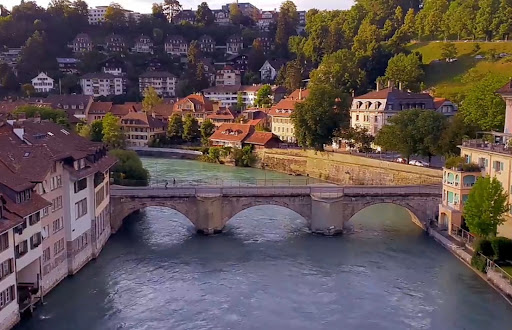 Nydeggbrücke bridge connects the eastern part of the old city to the new part. It is 190 metres long, 10.5 metres wide, and crosses over the Aare River, which is the longest river flowing entirely within Switzerland.
