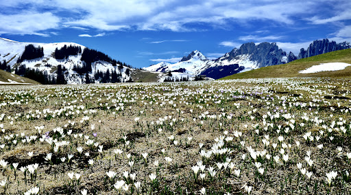 We go here mostly in the spring when the snow slowly retracts and the first crocuses and gentians break through the soil. This usually happens during the first week of May. Early June you may find morels among the rich alpine flower beds if you look carefully. On the upper part of the road down into the canton of Berne towards Boltigen there is a good eatery on your left hand side with view over the valley and where you can play your favourite music from the past century on their...