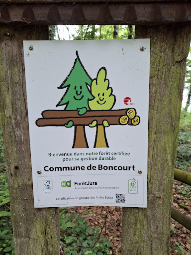 Read moreBeau cadre très propre. Les statuts sont jolie et bien sculptés. Une belle balade en forêt qui plaît aux enfants comme aux parents. La tour plus haut est la cerise sur le gâteaux ainsi que le champs de vaches qui nous dépayse. Un tel proximité avec les animaux nous fait voyager et oublier la ville. Le coin barbecue est génial et toujours très propre. Tous est mis à dispositions pour le confort des promeneurs (grilles, bancs, tables, eau potable, toilettes...) c'est vraiment un lieu superbe ! Le point fort c'est qu'il y'a deux parkings. Un au début du parcours et un autre juste à côté du coin barbecue. J'aime énormément cet endroit en Suisse qui nous laisse admirer un magnifique paysage...