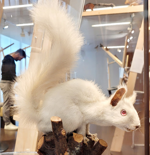 We visited the current exhibition about the squirel. It was interestingly displayed and explained. There are a lot of things for smaller kids to look at ( stiffed animals, pictures, videos, nests...) , touch (different furs, horns, skulls...) or for older booklet to solve tasks and quizzes. The text is only in German. But nowadays, it's easy to translate with Google. Upstairs is also more information about local insects, how the alps were created and downstairs about fish.