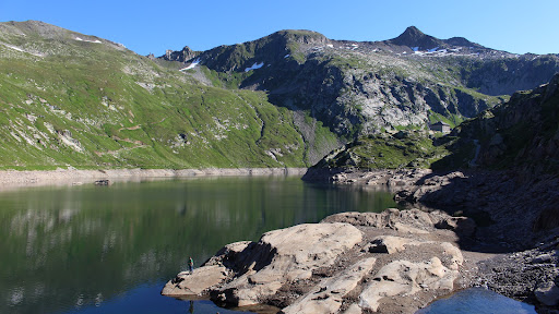 Der Lago della Sella (2257 m.ü.M.) liegt etwa 45 Wanderminuten vom Ospizio Gotthardo entfernt. Der Aufstieg zum Stausee ist problemlos auf einem kleinen Sträßchen oder alternativ auch über einen kleinen Wanderweg machbar. Am See selbst wird man bei schönen Wetter von einer wundervollen Alpen Natur gepaart mit menschlicher Technik in den Bann gezogen. Kristallklares Wasser füllt den See hinter der mächtigen Staumauer. Am hinteren Ende des Sees liegt die Cascina di Val Torta mit Wassereinflüssen und herrlichen Bergwiesen die im Sommer geschmückt sind mit unzähligen bunten Alpenblumen. Rund um den See liegen die Berge der Kantone Uri im Norden und des Kanton Tessin im Süden. Der See ist auch ein Eldorado für Angler. Auf einem guten Weg kann man den See problemlos umrunden. Da für den echten Bergwanderer eine pure Umrundung des See keine wirkliche Herausforderung darstellt lohnt sich noch der Aufstieg zum Gipfel des Piz Giübin (2776 m.ü.M.). Vom Gipfel hat man dann einen Ausblick auf den See wie vom Flugzeug. Wie man so schon sagt: Nur fliegen ist schöner" Die ganze Tour mit See und Gipfel dauert etwa 5 Stunden....