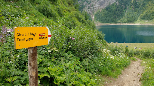 Lovely location. A medium size lake of a beautiful deep blue.There is a cabin that leaves from Rodi Fiesso and goes up every 15 minutes.Atvthe top there is a capanna and a small restaurant. The lake round walk takes about 40 minutes.it is a very easy walk.Possible to go with buggies but with some...