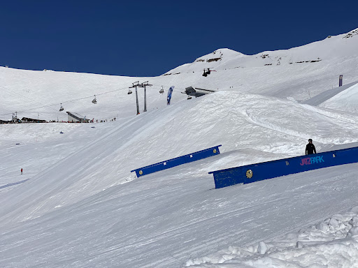 Toller Funpark sofern er frisch geshaped ist (im Moment mega hart und eisig). Erster Kicker sehr schwierig. Drei Boxen (breit, schmal und rainbow) sowie viele Rails und ein kicker...