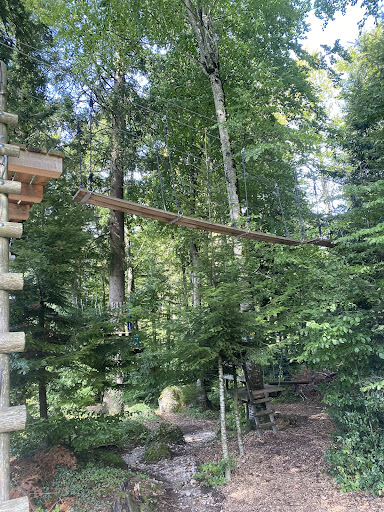 Theres a bus to this place once an hour. The bus stop is super close to the park. No.885. We took the train from Oerlikon, and it takes about 1hr.32 min to get to this place. We first headed to the Seilpark, since the cloudy weather was perfect to do it. The ticketing counter is right opposite the park, they provide the safety harness, helmet and gloves. There are special gloves to this place, they offer you a video of 3-4 minutes length on how the entire park works. The staff helps you secure the harness first and then they let you into the park. The staff is all around the park, not in great nos however, but they can be spotted well. Our boy is just 8 years old,so he found the routes/circuits 1-8 tough. We later took him to the kinder routes, A,B n C, of which the C is the newest and quite challenging for them.