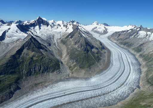 Reaching the top, we're greeted by a panorama that defied description. The Aletsch Glacier, a sprawling expanse of ice that stretches as far as the eye can see, lay before us in all its glory. The majesty of the Swiss Alps unfolded in every direction, with jagged peaks piercing the sky and valleys carved by millennia of glacial activity.