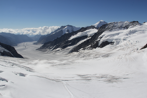 By comparison, for more pristine views and at fraction of cost, Schilthorn is worth considering. Our ride up from Lauterbrunnen was free with the travel pass. A stop-over to indulge in adventurous walk over a rope (James Bond style!) was thrilling. We started in the afternoon and by then the clouds had covered peaks and we could be go all the way to the highest level....