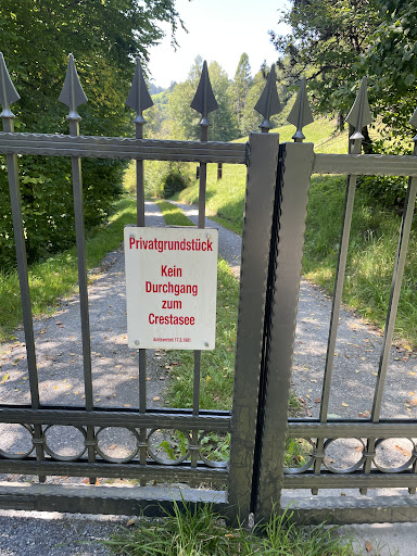 Read moreThe lake is beautiful and the water is perfect and clear. The ground of the lake is very soft, and has a muddy texture where you sink in a little bit when you touch the ground. We found it nice that dogs are allowed in the whole lake area including on the big lawn. The only area not allowed for dogs is inside the water right next to the kiosk and on the little pier. The lake was quite crowded when we got there at around 1pm, and it was difficulty to find a space in the shade. Highly recommend bringing an umbrella and sunscreen. Compared to Caumasee we found Crestasee more accessible when you are with dogs, but Caumasee seems to have better spaces and facilities for when you don’t bring a dog (though at a...