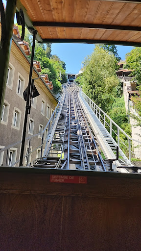 An interesting experience to take the waste water operating funicular. Yes it is a little bad smell to take this funicular but for the 3min ride experience it's worth it. We had the SBB local swiss train app so the price was included in Fribourg...