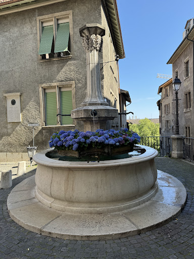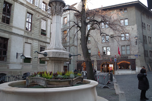 Read moreLa fontaine du Perron est une petite fontaine discrète de la Vieille-Ville de Genève, adossée au mur du Grand Perron. Elle ne doit pas être confondue avec la fontaine du Puits-du-Four, située juste au-dessus, sur la terrasse. Construite au XVIᵉ siècle, elle faisait partie du réseau de fontaines publiques destinées à fournir de l’eau aux habitants. Son style est sobre : un bassin en pierre semi-circulaire, surmonté d’un pilier encastré d’où s’écoule un filet d’eau. Avec le lierre qui recouvre le mur, elle dégage un charme pittoresque et rappelle la fonction utilitaire de ces points d’eau autrefois...