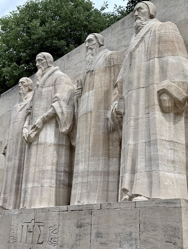 At the centre of the monument, four 5 metre-tall statues of Calvinism's main proponents are depicted: