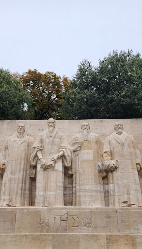 At the centre of the monument, four 5 metre-tall statues of Calvinism's main proponents are depicted: