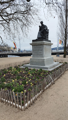 The statue of Jean-Jacques Rousseau was inaugurated in 1935 on the old island, renamed for the occasion in the name of the great philosopher born in Geneva on June 28, 1712. This bronze monument is the work of the sculptor James Pradier, to whom he was ordered in 1930. Rousseau Island is located on the Rhone River, shortly after the end of Lake Geneva, just a few tens of meters from the Pont du Mont-Blanc. It can be reached by a footbridge, which also links the Quai des Bergues, on the right bank of the Rhone, and the Promenade du Lac, on the left bank. The statue and the island were renovated and refurbished in 2012, on the occasion of the tercentenary of Jean-Jacques Rousseau. The statue was showcased by British filmmaker Peter Greenaway on the occasion of his installation "Stairs", in 1994.