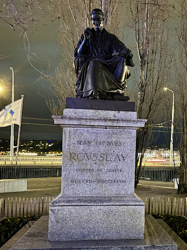 Read moreIn this beautiful city, where billboards of Genevan watches are lit on top of buildings surrounding the lake; the most notable philosopher son of Geneva has a life size black statue on a small island named after him. He is holding a pen in his hand, a book in his lap, books under his seat and a robe around his body. The site was awfully dark, evidently city administration has forgotten the old fellow. I visited the monument , took some photos and kept looking for memorial plaques, some description of his life, work and achievements but found none.
