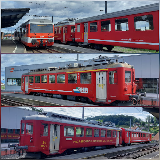 Gemächlich geht es mit der Rorschach-Heiden-Zahnradbahn (ehemals RHB) der AB durch eine liebliche, sattgrüne Landschaft aufwärts. Die Höhenzüge sind an diesem früheren Morgen, vom nächtlichen Regen, mystisch mit Nebelschwaden umgarnt.