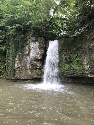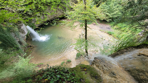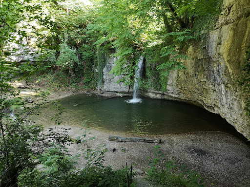 It is a beautiful place but it is recommended to avoid swimming. Some people still do. Just 300m upward from the fall is a water purification station. Residual water may easily infiltrate in the ground and in the spring...that is confirmed by the two nearby info boards. Lovely to fotograph and dip your toes in, picnic or barbecue. There are hiking trails in the proximity. Parking may be a problem. Best solution is up on the road, 300 m on the right side, where the water...