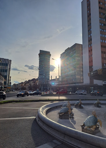 Read moreKaplumbağalar la süslenmiş bu anıtsal çeşme La Chaux-de-Fonds'un simgesi olarak adlandırılıyor. La Chaux-de-Fonds'un ilk dekoratif anıtı olan Grande-Fontaine, 1888 yılında Areuse kaynaklarından gelen suyun gelişini anmak amacıyla dikilmiştir. Paris esintileri taşıyan bu çeşme, teknik bir başarıyı kutladığı söyleniyor. Harika bir yapı ve La Chaux-de-Fonds'un öerkezinde sakince dinlenebileceği iz bir meydanın ortasında bulunuyor. Bugün tarihli çeşmede tadilat bulunuyor. Çevresine iskeleler kurulmuş sanırım temizlik ve sularının açılması için bir çalışma var. Pazar günü ülkemize dönüşümğz var öncesinde biterse bitmiş halinide görmek için sabırsızlanıyorum. Buraya geldiyseniz muhtemelen hertürlü...