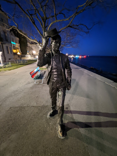 Read moreDie "Passarelle de l'Utopie" drückt mit ihrem Namen schon aus, was sie sein will, eine wenig reale Erscheinung, eine utopische Fantasie. Es entspricht dem Humor der französischsprachigen Schweizer, auch wenn hier die Sprachbarriere nicht krass hervortritt, Neuchâtel ist zweisprachig, das Deutsch ist den Einwohnern von klein auf, schon gleichberechtigt und vertraut. Der Steg führt auf den See hinaus um abrupt zu enden. Die Sinnlosigkeit welche manche Bürger darin erblicken, ist auch eine psychologische Reflektion, die die Charakteristika der Besucher aufscheinen lässt. An sich wäre eine Installation des bekannten Textes über dem Eingang zum Tempel in Delphi, "Erkenne Dich selbst", eine kunstvolle Ergänzung, die den Sinn der Passarelle verdeutlichen könnte. Doch auch ohne dies gewinnt mancher Besucher hier ein Erlebnis, sei es der Sonnenuntergang oder das glitzern des Wassers im Licht des Vollmondes. Es gibt viele Varianten und Spielarten, die Betrachter hier zur Anwendung bringen können. Der Rabe, bekanntlich ein weiser Vogel der so manche Sage ziert, sitzt als Skulptur auf einer Bohle und lässt gelassen die Menschen an sich vorbeigehen. Auch die Dame mit Hut auf dem Quai, deren Kleid aus dem Anfang des letzten Jahrhunderts stammt, ist eine mehr utopische Erscheinung, eine Skulptur, die in Bezug zur Passarelle einen interessanten Aspekt verstärkt, die eigene Fantasie weckt, und Bilder aufscheinen lässt, die humorvoll die Welt als schemenhft erscheinen lässt. So ist die Passarelle klar mit Sinn erfüllt, doch ihn zu erfassen, ist ein Spiel mit...