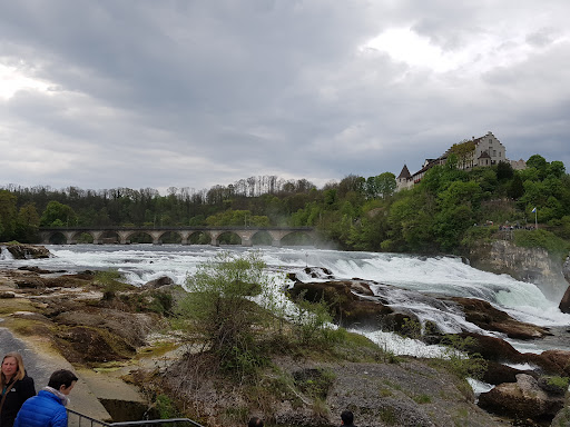 There is not much to the castle itself. It has been turned into restaurants. Surrounding it, though, is a playground, shops, eateries, toilets, and a church. There is a small exhibition. For photography of the castle, you get more scenic views from the other side of the river. You can cross using the train bridge, which has a pedestrian pathway. The best views of the falls are from the left-hand side when crossing. You get tickets for accessing the falls viewing platforms at the castle. You can pay by cash or card. The machine was easy to use. I got there early, so there was a small queue. This got larger as the day progressed. I can see it getting very busy in the summer, so I would recommend pre-booking tickets. If you use a wheelchair or a pushchair, you are asked to purchase your tickets from the Schloss Laufen Visitor Centre. They can not be purchased online. There is a nearby carpark with disabled parking. There are wheelchair...