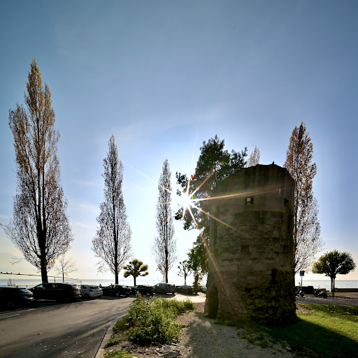 This not so old tower, was initially constructed by the Swiss-English banker and member of the British parliament, William Haldimand, around 1830 on his property Denantou, on the eastern side of the little stream la Vuachère and then moved to the western side in 1901 several decades after Haldimand's death. When I moved to Lausanne some 30 years ago, it was almost completely covered in ivy which is damaging the fragile molasses stone but this was removed when the tower was last renovated around 2000. It is now surrounded by a parking and marks the start of the popular walking path eastwards along the lake towards the towns of Pully and Lutry. It has also give the name to a nearby bus stop. At best there is a myth about its creation, telling us it was the result of a competition between three wealthy men to build the most romantic tower ever. In fact the two others already had built their towers in other parts of Lausanne, of which only one...