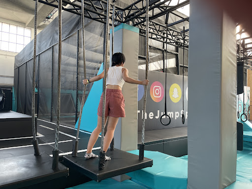 Il y a du bon et du mauvais, en positif, on peut aller très haut sur les gros trampolines dans l'espace 13 ans+, et atteindre le sommet de gros murs dont on peut sauter après sur un matelas, il y a aussi deux parcours Ninja Warrior qui peuvent être chronométrés en appuyant sur des boutons plus ou moins fonctionnels vu les coups qu'ils se prennent toute la journée, il y a un trapèze, des paniers de baskets, un espace pour faire des saltos en sécurité dans un airbag géant, on peut aussi sauter d'une plateforme élevée dans un autre airbag géant, et il y a d'autres types de jeux et activités possibles comme les combats en équilibre sur une poutre où l'on doit faire tomber son adversaire avec une barre en plastique ou encore les jeux-vidéo par Valo-Jump (interactifs avec le trampoline).