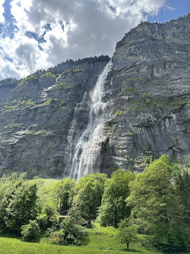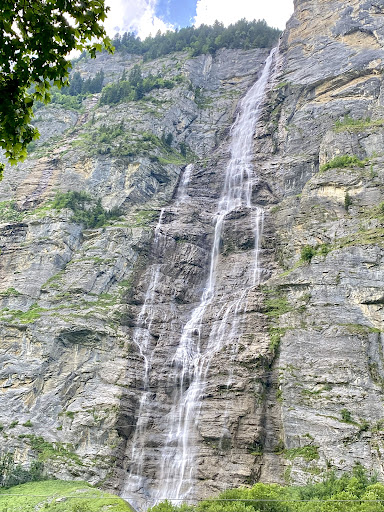 The journey to Mürrenbachfall itself was a delightful experience. As I made my way through the charming village of Mürren, surrounded by quaint Swiss chalets and breathtaking mountain views, the anticipation of witnessing the waterfall grew. Following the well-marked trail, the sound of rushing water grew louder, building up the excitement. Excellent view from down small BBQ place and...