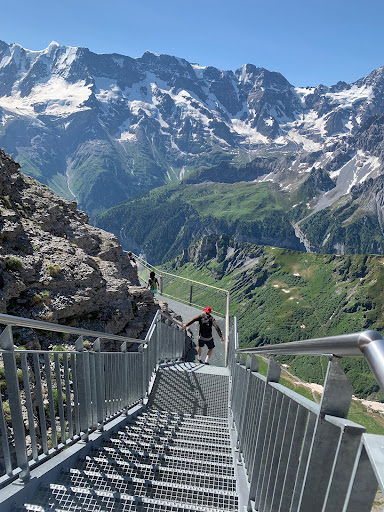 We did the Thrill Walk as part of our trip up to the Schilthorn. Birg is the halfway point to Schilthorn and is where one changes cable cars to finish going up to the Schilthorn or coming back down to Murren. There is a small outdoor cafe there as well that offers great views and looked like OK food but we did not order anything. We stopped there for the Thrill Walk. Just get off the cable car at the Birg stop and walk out onto the outdoor cafe area. On one end, you will see a small turnstyle and steps leading down. The Thrill walk is free as long as you got to this point (costs money to take the cable cars but free with Swiss Travel Pass, in 2019 anyway). Pretty fun but not for those who really do not like heights. Grated floor on walkway and totally safe. In one section you have the option to walk across a short section on a single cable while holding onto two other cables with a wire mesh below you for safety. Pretty wild. There is an option to walk around this just like the mesh tube you can crawl thru later on. That one is seemingly more sized for kids and small adults. At the end of Thrill Walk, easiest to just turn around and go back to the point you entered. Also, there was a small snow cave that one could walk down to from far end of the Walk. Inside were the remains of some ice sculptures. Apparently they do this every spring/early summer. Bit of a steep walk down to that and a bit slippery on snow parts but was a bit of extra fun. Overall, pretty fun and some great views down toward Murren and the surrounding mountains and valleys. Great as part of the package to go to the Schilthorn, especially if you have a Swiss Travel Pass. Pretty sure we would not have done any of this if we had to pay $105 each. A solid 4 stars for the Thrill Walk without thinking about the money. ...