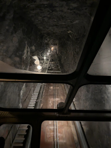 You have the option to take stairs and a path all the way up and down. However it is recommended to take the angled large capacity elevator half way up and then walk up to see the falls above you and then walk all the way down. Technically you could take the elevator down but why miss the other six views of the falls?