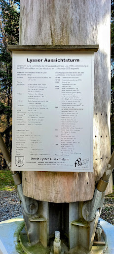 Read moreWow eine tolle 360° Aussicht vom Lysser Turm. Auf der Aussichtsplattform hat es 2 BĂ€nkli zum verweilen, schön. Unten am Turm sind BĂ€nke und Tische zum Picknicken. An der Sonnhalde sind mehrere ParkplĂ€tze, Parkstreifen (wichtig Parkscheibe). Vom Ende der Sonnhalde erreicht man den Turm (Wegweiser) in 5 bis 10 min. Auch an der Sonnhalde 200m unterhalb des Turms sind noch 2 Grillstellen (kein Holz vorhanden). Alles sehr sauber und gepflegt. Empfehlenswert den Lysser Turm zu besuchen. P.s. FĂŒr Menschen mit Höhenangst und nicht Schwindelfreie ist der Aufstieg eine wahre Herausforderung, da das Treppenhaus offen ist und die Stufen aus Stahlgitter...