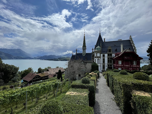 Nice walk to Meggenhorn Schloss from Luzern center with its gardens, vineyard, farm with animals, playground, picnic area and a bathroom) l. There are several options for a visit to the Meggen Horn. Once reaching the castle, enjoy a circular loop walk pass by vineyard, farm, boat house, large wooden Christ sculpture on the Meggenhorn with stepped wood walk back up to castle. (Can do in reverse starting loop at yellow walking signage in front of castle (lakeside). Have done this entire walk multiple times over past 15 years walking and when timing works, return by lovely small vintage wooden boat to Luzern center ship dock, near KKL) with exiting possible along the way (ex Hermitage Hotel, Swiss Transport Museum, Wagner Home…).Walking from Luzern train station (Bahnhof) possible in 45 min to an hour, along the lakeside promenade then a short bit on roadway sidewalk to Hermitage Hotel. Look for yellow walking signs on left side of Hermitage Hotel when facing the lake. Follow signage for 20+ minutes to Meggen Schloss from the Hermitage Hotel. To shorten walk, take Bus 24 either from Luzern Bahnhof, Scwannenplatz …from the Swiss Transportation Museum (post beautiful lakeside promenade) and exit Bus 24 at the Hermitage Hotel stop, directly in front of hotel. Also, there is a pay parking lot just past Hermitage Hotel. If you stop for a drink etc at the hotel, they provide upon request a free parking pass. Don’t miss walk up to hills behind the castle following a path, pass 2 wooden sunbathing benches, ending at gazebo for additional breathtaking scenery. My children, now grown, continue to enjoy all the Meggenhorn provides. It is a beautiful place requiring little to no expense to enjoy Switzerland...