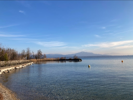 Read moreA wonderful lawn area by the lake. A series of concrete steps lead to a shallow area that is safe for kids. At the far end is a small pebble beach. The lawn is beautiful maintained, free to access, has very clean toilet facilities and has a restaurant and bar on site. There is parking on the main road but it fills up quickly. It’s a short 5-10 minute walk out of Nyon town. Take the path along the lake front to avoid walking...
