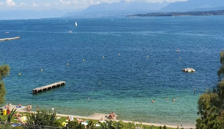 Read morePretty nice swiss style beach - not too crowded, grass strip for lounging, easy entry and the dipoing via concrète entry steps. Parking strip is not too big, but not impossible, needs à macaron, up to 3 hours.