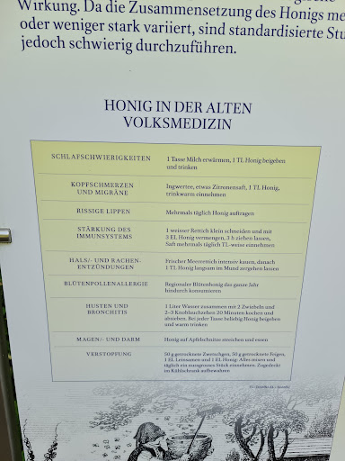 Ein schöner Rundweg der viel Wissen rund um das Thema Honig vermittelt. Am Start befindet sich ein grosser, kostenloser Parkplatz. Insgesamt sind es 12 Stationen für die man circa 1 bis 2 Stunden braucht. Der Weg ist entweder asphaltiert oder geschottert, Felder und Wald wechseln sich ab, er ist gut beschildert. Am Ende der Tour geht es noch einmal bergauf durch den Ort zum Parkplatz. Mülleimer sind mehrfach vorhanden, einen Grillplatz mit Unterstand gibt es auch. Insgesamt sehr...