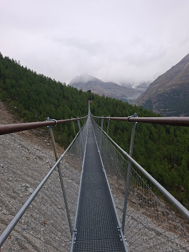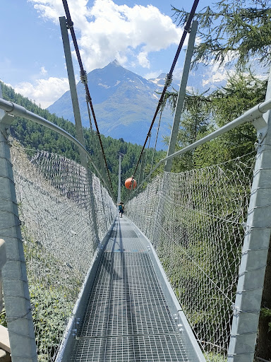 Read moreDer Weg beginnt beim Bahnhof Randa, von wo aus die Wegweiser «Europabrücke» die Richtung zeigen. Mit 494 m ist sie die längste Fussgänger-Hängebrücke der Welt. Die Rundwanderung dauert ca. 4 Stunden. The path begins at the Randa train station, where the "Europabrücke" signs point in the correct direction. At 494 m, it is the longest pedestrian suspension bridge in the world. The round trip takes about 4 hours. Le circuit commence vers la gare de Randa, au panneau indicateur "Europabrücke". Le "pont Charles Kuonen" détenteur du record du monde: ses 494 mètres en font le plus long pont suspendu piétonnier du monde. Le circuit prend...
