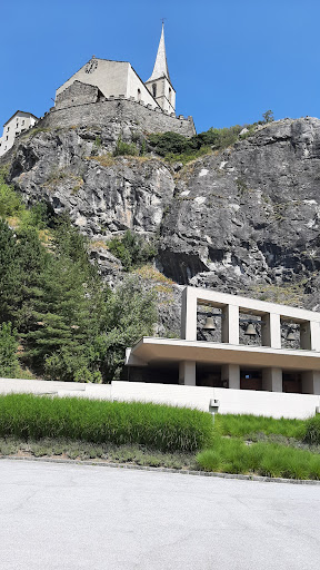Churchyard open at all times. I visited on a Sunday afternoon. Ten to twenty minute walk from Raron station. The path uphill to the church is gorgeous. Charming cottages and lion-head fountains. Rilke's grave overlooks the whole valley and has one bench in front of it. During a sunlit day the wind howls gently and wind chimes sound. Amazing ambience, just air and light. A fitting resting place for one of the greatest poets...