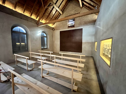 This is a lovely chapel and visitor centre to to learn more about the work of Balthus, his work and his life in the Grand Chalet. The chapel was constructed in 1884 and subsequently acquired by the Free Church in 1926. Presently, it is under the ownership of the Balthus Foundation and serves as a visitor center. Upon entering, you will find a touch screen tablet on the table on the right. This offers access to a selection of audiovisual content that will be projected on the screen in the front of the chapel. Among the available selections, the most recent is "In the Studio of Balthus - Chapter One," directed by Wim Wenders. "Le Grand Chalet de Balthus" offers a behind-the-scenes tour of of this remarkable building. This film is available with English subtitles and is highly recommended. For visitors wishing to pay their respects at Balthus’ final resting place, walk down the stairs to the left of the chapel. The grave's somewhat untamed appearance is deliberate, reflecting the family's desire for a rustic and natural...