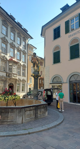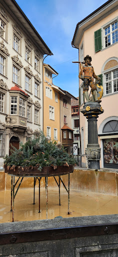Read moreDer Tellenbrunnen steht in beachtenswerter Umgebung des "Hauses zur Wasserquell" mit seinen Rokokoerkern. Die Skulptur der Legendenfigur Wilhelm Tell, ist hier sehr idealisiert gekleidet dargestellt. Es ist eine Kopie vom Original aus dem Jahr 1522, ebenso wie die Säule. Die farbenfrohe Gestalt mit Armbrust ist ein Blickfang, der viel Beachtung findet. Das achteckige Wasserbecken, das Werk eines Brunnenbauers und Bildhauers, datiert aus dem Jahr 1632. Für Kunstorientierte Betrachter ist es ebenso von Interesse, da erst die gesamte Komposition als Objekt der damaligen Zeit seine Entsprechung findet. Aufmerksame Betrachter bemerken zurecht, dass die Metallarbeiten zweckdienlich gestaltet sind und heute für passenden Blumenschmuck eingesetzt werden. Es ist ein anschauliches Werk, das aufschlussreich für seine Gründungszeit angesehen...