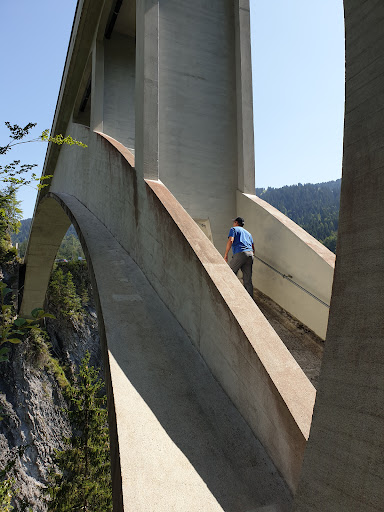Well, we were to stay at an AIRBNB beyond this bridge in Schuders. So when I came upon this bridge I just kept going because the drive had already been hectic up to that point. Little did I know I should have stopped at this bridge, admired it and went back down! The drive beyond is for one car only! And almost 90° switchbacks. I will never do this drive again. But when I saw the bridge I liked it while nervously gripping the wheel. Never did I see except maybe a slight edge to pull off before it though. It is amazing to think of how it must of been constructed and how the homes up here (where I’m staying now) couldn’t be here without that bridge. I don’t suggest driving beyond the bridge. I’m thankful to see the photos from others because when I drive down tomorrow I’m not stopping until I get...