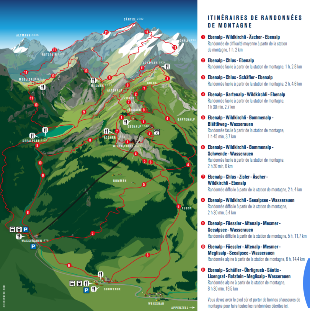 Read moreYou can take the cablecar to get to the top of the mountain and, if you want, take a hike/walk. It takes 6mn to get to the top of the mountain by cablecar, where the view is exceptionnal. The two way ticket is 30CHF. Once you get there, you have a few paths to choose from depending on your fitness/the time you have (see map below). I recommend taking a light sweatshirt (especially for children) as it is colder up there. I personnally think that Seealpsee is the best path, but unfortunately we didn't have time to do it (we did the Shafler path instead, which was quite easy, when walking I came accross several old people...