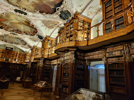 It's really a very impressive library to visit and experience. Befire allowed to enter the library. You are required to wear large pantoffols that you place over your street shoes. It is required to protect the floor in the library. Once entering the library, you feel like you walk into an impressive and historical place. It takes some time to adjust to the splendour of the interior. There are so many impulses to process and to look at. Especially the paintings on the roof, the cabinets with the old books etc. We would have liked to spend some more time here, but we arrived about 1 hour before closing time and had unfortunately to hurry up. Apart from the library, there is also a cellar museum with old religious objects used in the mass. The special pieces are old bibles that have covers that contain carved out ivory pieces that depict religious situations. It was also impressive, but we had very little time left to look further around. We will need to come back to explore this further and in...