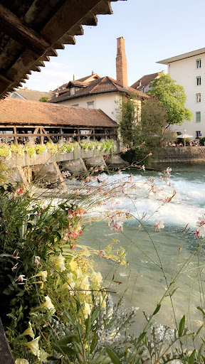 Read moreTrès beau pont-écluse couvert en bois. Joliment fleuri. Les surfers (Ben oui, on surf en plein cœur de la Suisse) du coin viennent faire des figures en profitant de la vague générée par l'écluse. Ils sont parfois une bonne douzaine, gars et filles, à se succéder sur la vague. Tout un spectacle. Et si on veut casser la croûte, on trouve quantité de restaurants dans les environs, la plupart au bord de l'Aar. Plus généralement, Thoune n'est pas la ville la plus connue de Suisse, mais elle mérite vraiment une visite. Les bords du lac sont joliment aménagés et on y jouit d'une vue splendide sur les sommets des Alpes, qui étaient encore enneigés. Nous n'avions pas planifié d'y aller, mais nous...