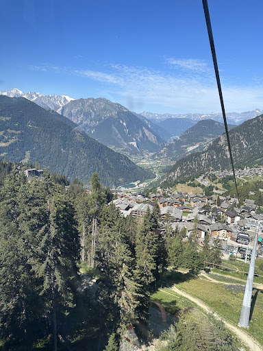 Superbe découverte avec le bisse du Levron en dessus de Verbier. Parqué au grand parking (gratuit) près de la télécabine Le Châble-Verbier, nous avons pris la cabine du Châble à Les Ruinettes. Puis nous avons rejoint le bisse un peu en dessous de l'arrivée de la cabine. La première partie est un peu descente par un petit sentier et vous arrivez rapidement vers le marteau du bisse. Très jolie construction mais n'ayant plus le marteau. Dommage. Ensuite le bisse descend un peu en chute et en suivant le sentier un peu sinueux, vous arrivez vers la partie presqu'à plat du bisse. De là , le long sentier du bisse vous amènera à la chute plus de 8km. Bordé de zone de lupins sauvage de plusieurs couleurs, vous pourrez admirer le massif du Mont-blanc et d'autres montagne dans une vue superbe. N'oubliez pas de bonnes chaussures de marche, de l'eau, des casquettes et de la crème solaire. Il y a très peu d'ombre. À mi-chemin vous pourrez boire le café ou vous restaurez. Si vous optez pour un pique-nique, il n'y pas beaucoup de places aménagées pour manger, quelques bancs seulement. Très belle balade,...