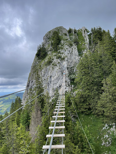 Je vous conseille fortement de louer ou d'acheter votre propre matériel dans un magasin de montagne avec baudrier, casque et longes de sécurité et de ne pas utiliser le matériel loué par Charmey qui est uniquement bien pour faire de l'accrobranche.